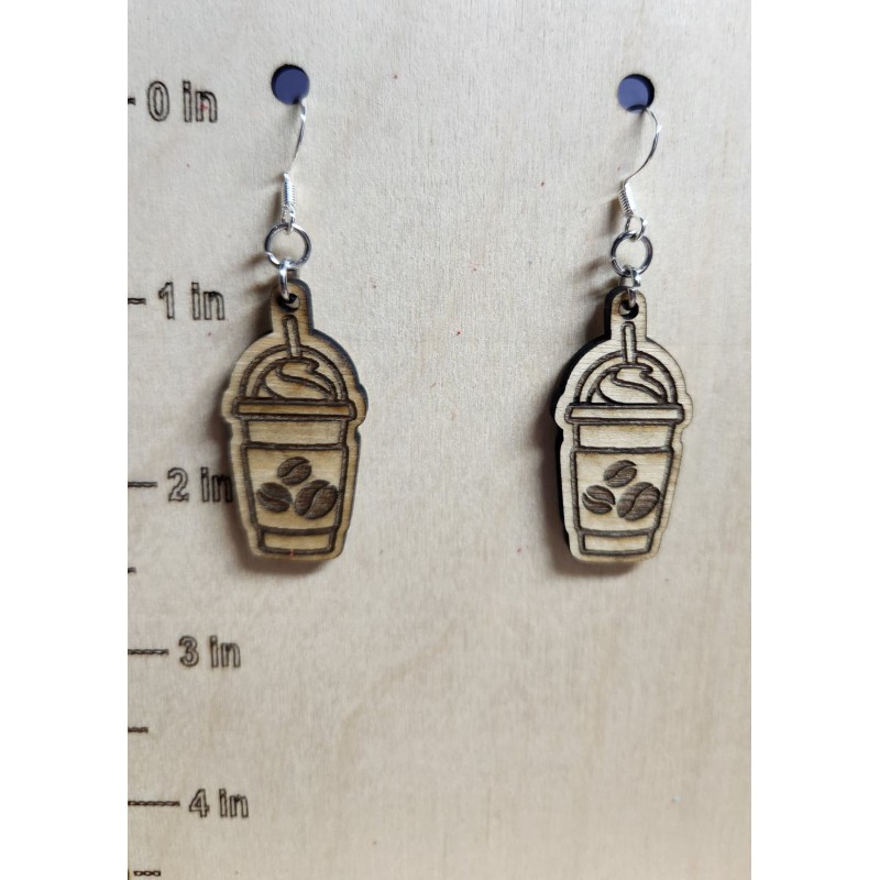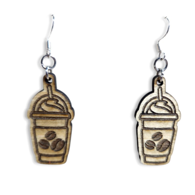 Coffee Cup Wooden Earrings with Coffee Bean imprint