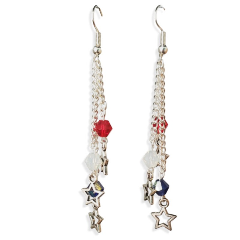 Red, White, and Blue Crystal Beads with Star Cut-out Charm Earrings
