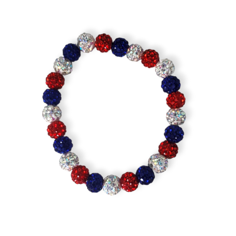 Red, Light Silver, Blue Patriotic Pave Bead Bracelet